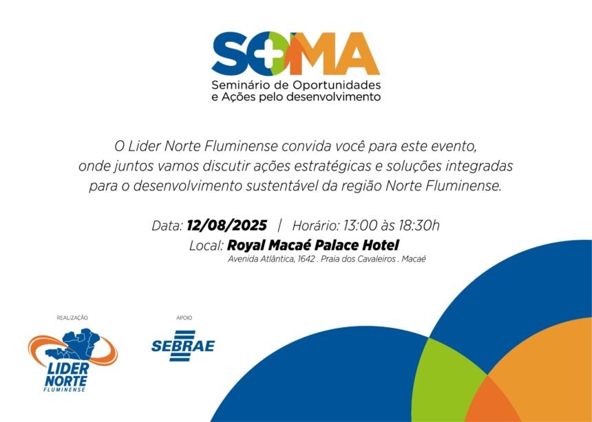 Nesta terça-feira (12) Macaé, sediará o Seminário de Oportunidades, Mobilização e Ações (SOMA) no Royal Palace Hotel, em Macaé. O evento, é promovido pela Líder Norte Fluminense, com apoio da…